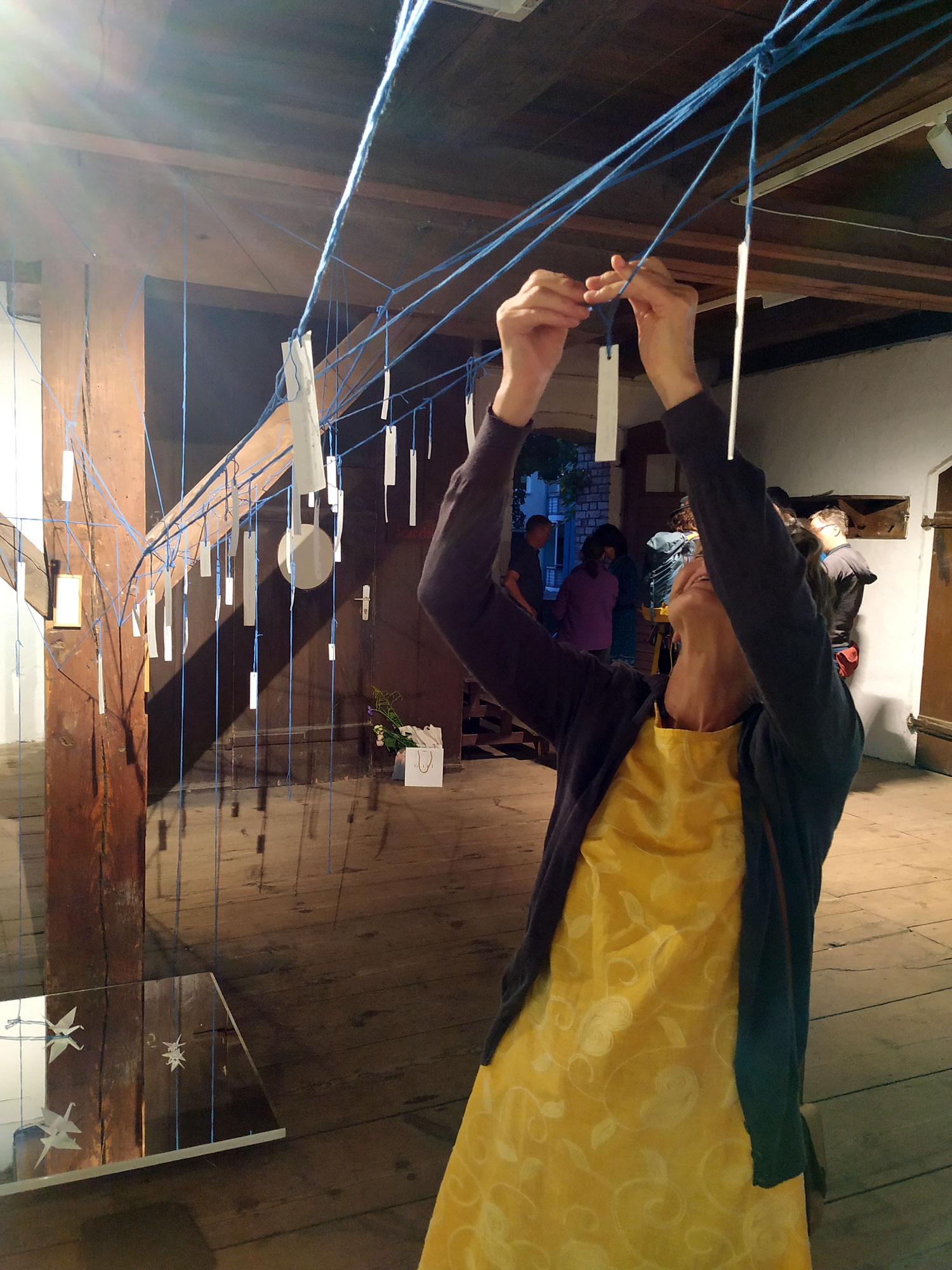 People are cordially invited to write down their thoughts and reflections on water and to add them to the installation. Their participation complements the installation and enriches the meaning of my work.