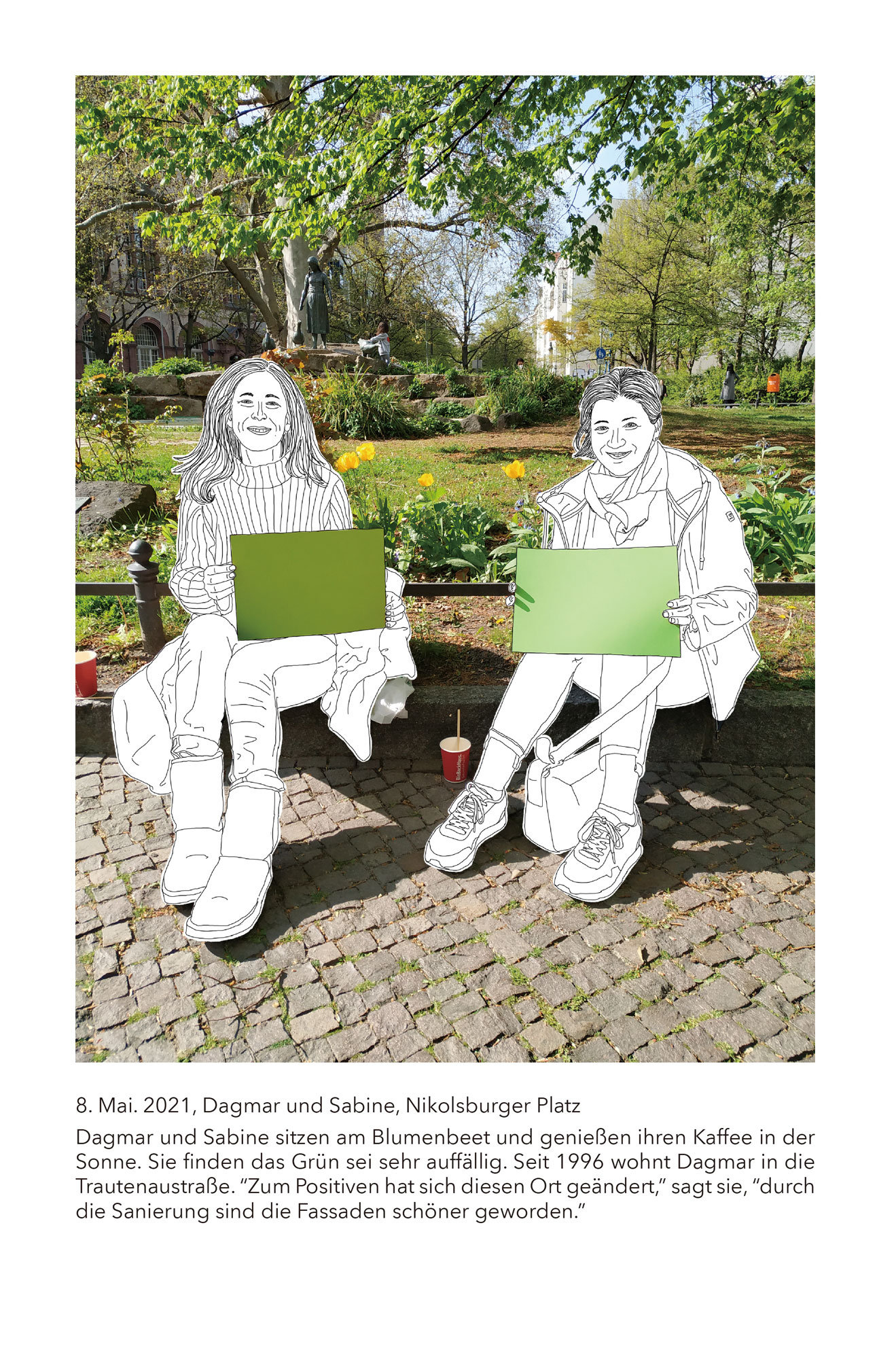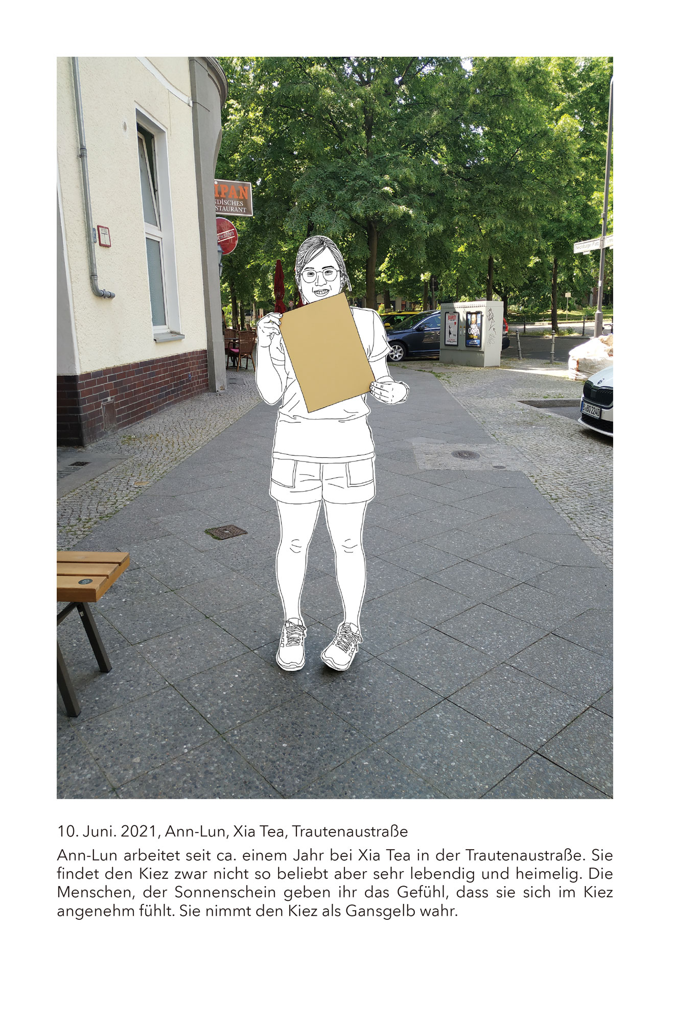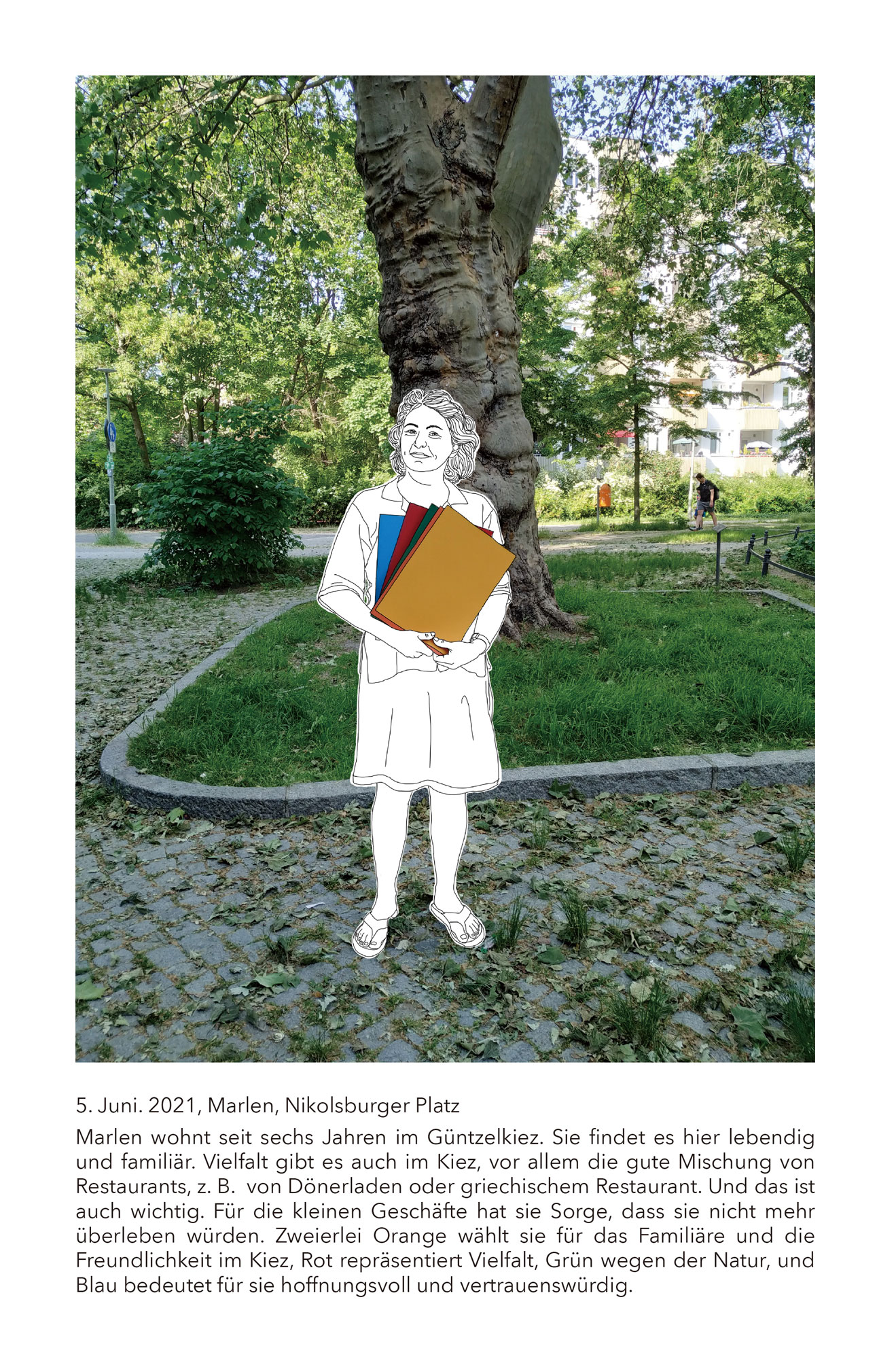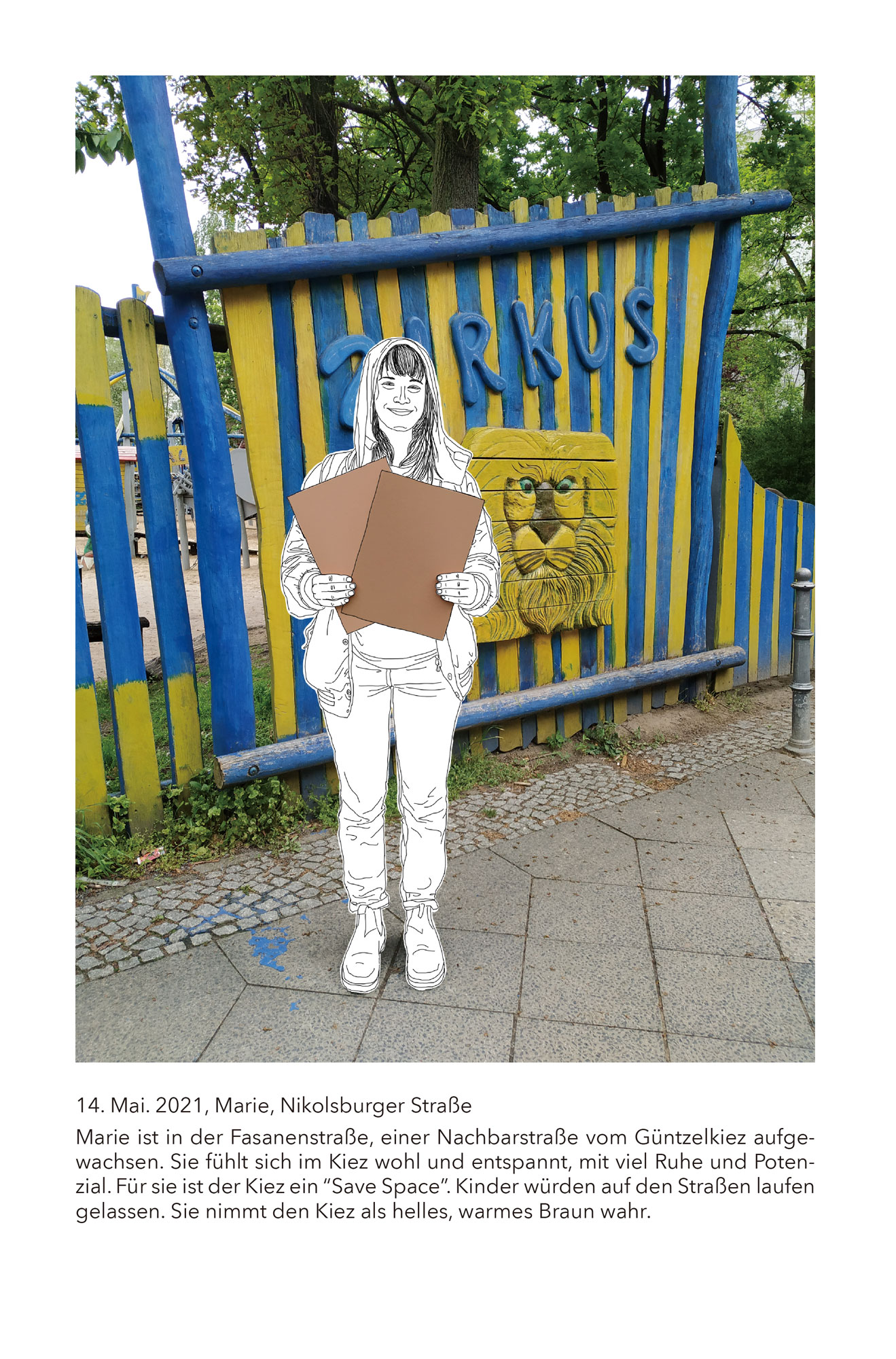 During this project, some people remembered their childhood. Some have compared the Güntzelkiez with their previous places of residence and noticed big differences. Some have just moved into the Güntzelkiez a few months ago and are looking forward to their new life here. Some have lived in Güntzelkiez for over 40 years and are very satisfied and happy. With this project I try to encourage people to look at Güntzelkiez from a new perspective and to perceive the surroundings more.