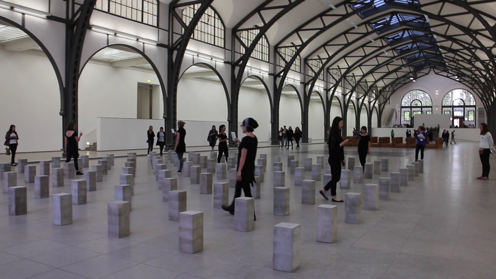 MEETING CARL ANDRE was an event by students for students. The goal was to consider the works in the exhibition Carl Andre: Sculpture as Place, 1958 – 2010 from other perspectives: in a game, in a conversation or in interventions. For one semester, students from different universities and disciplines have interacted with the works of Carl Andre’s and developed different actions. At MEETING CARL ANDRE you learned different attitudes towards art and could exchange ideas about it.