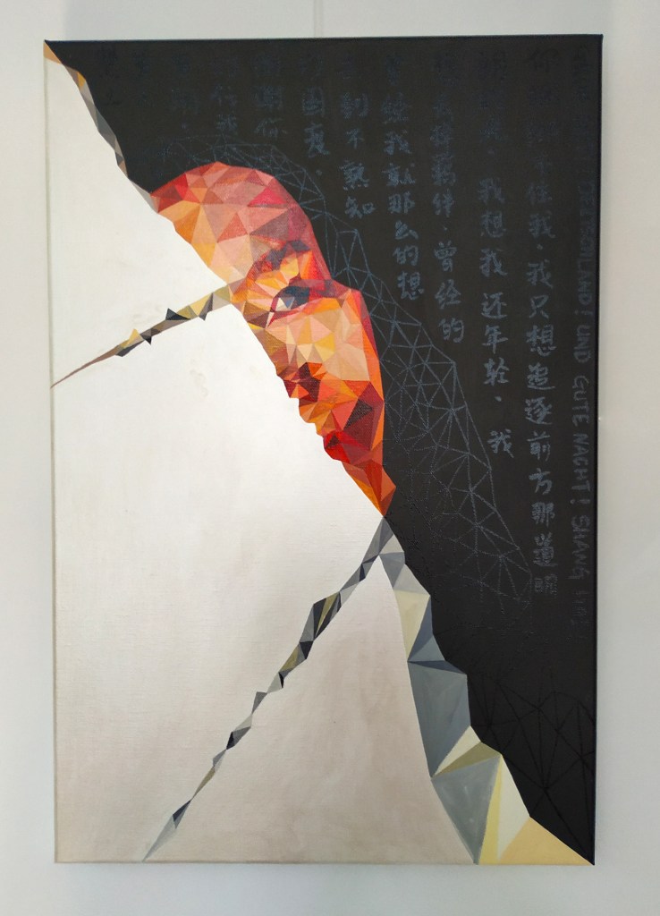My self-portrait outlines the change of myself from China to Germany, and my diary fragment is hidden in the background of the self-portrait.